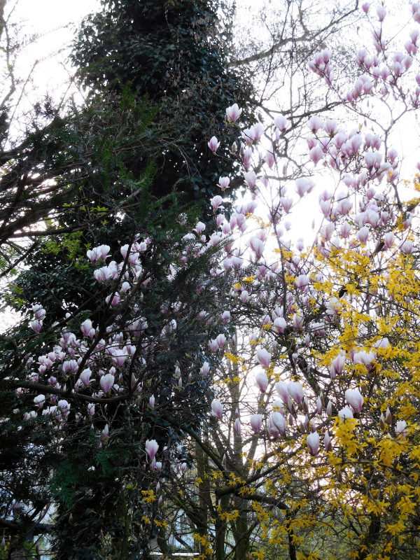Ein Blick aus dem Fenster lässt mich dann immer schmunzeln: Dort stehen Übeltäter und Abhilfe praktisch Seite an Seite. Zum einen eine Birke, die mit ihren Pollen und denen von Hasel und Erle das berühmte Allergietrio bildet. Und davor eben der schon erwähnte Magnolienbaum. Dessen getrocknete Blüten werden in der Chinesischen Medizin wiederum zur Behandlung von allergischem Schnupfen bzw. Heuschnupfen eingesetzt.